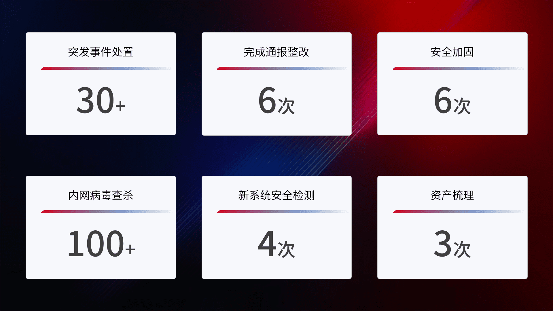 网络安全加固与风险管理:通过技术加固手段,,,,如加强区域隔离,,,,缩减攻击内网横向移动的范围;优化现有网络安全管理制度,,,,降低网络威胁暴露面,,,,减少被黑客攻击的可能性。。。